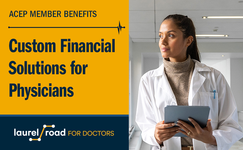 ACEP has partnered with Laurel Road, a leading banking and lending platform and brand of KeyBank, to bring you a full suite of premier financial solutions. Through this partnership, you’ll receive discounts on products that can help you on the path to financial freedom.