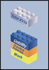 Physician Work + Practice Expense (facility) + Liability Insurance (malpractice) = Total RVU