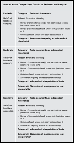 You are required to document a medically appropriate history of present illness and physical exam, although not explicitly required for billing and coding purposes, but you are advised to have a medically appropriate physical exam. Remember that documentation is used for more than billing and coding, but additionally communicating to other medical staff as well as medico-legal purposes. Coding professionals can draw from your physical exam to assist in justification of the complexity of the problem addressed. For example, within moderate COPA, there is “acute complicated injury.” Per CPT, this is an injury which requires treatment that includes evaluation of body systems that are not directly part of the injured organ system.