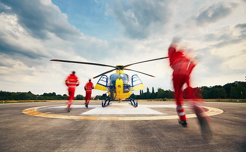 Three vehicles collide on the interstate; multiple patients need access to timely emergency medical care. Ambulances arrive, but it will take 45 minutes to drive to the trauma center and the most seriously injured patient may not survive. Soon a medical helicopter arrives; the medical crew intubates the patient, gives blood during transport, and arrives at the trauma center 18 minutes later.