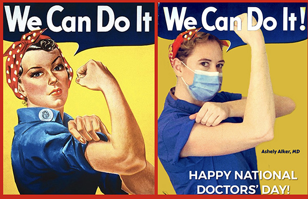 Dr. Alker asked her friend Dr. Dana Corriel, creator of SOMEDOCS, to create this image to celebrate Doctor’s Day on social media, and this is the image that Sara used to inspire her “We Can Do It” art: