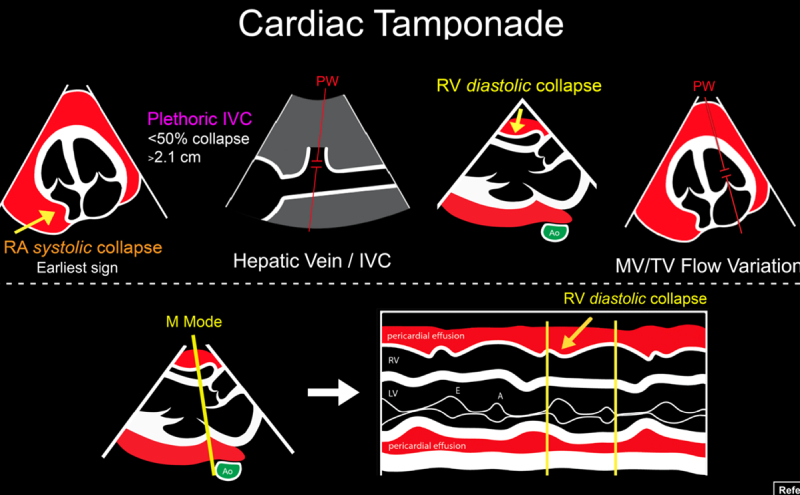 Alerhand S, Adrian RJ, Long B, Avila J. Pericardial tamponade: A comprehensive emergency medicine and echocardiography review. Am J Emerg Med. 2022;58:159-74.