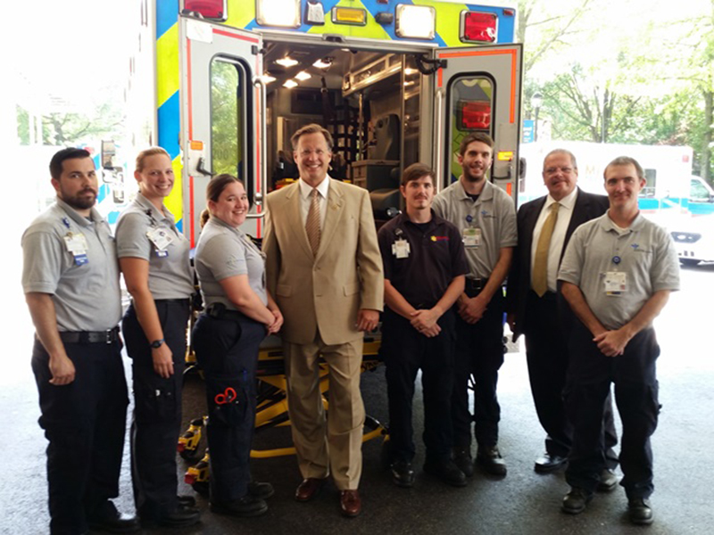 Congressman David Brat (R-VA) with EMS staff outside of Bon Secours St. Mary's Hospital
