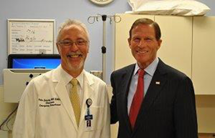 Dr. Peter Jacoby and Senator Richard Blumenthal (D-CT) at Saint Mary's Hospital