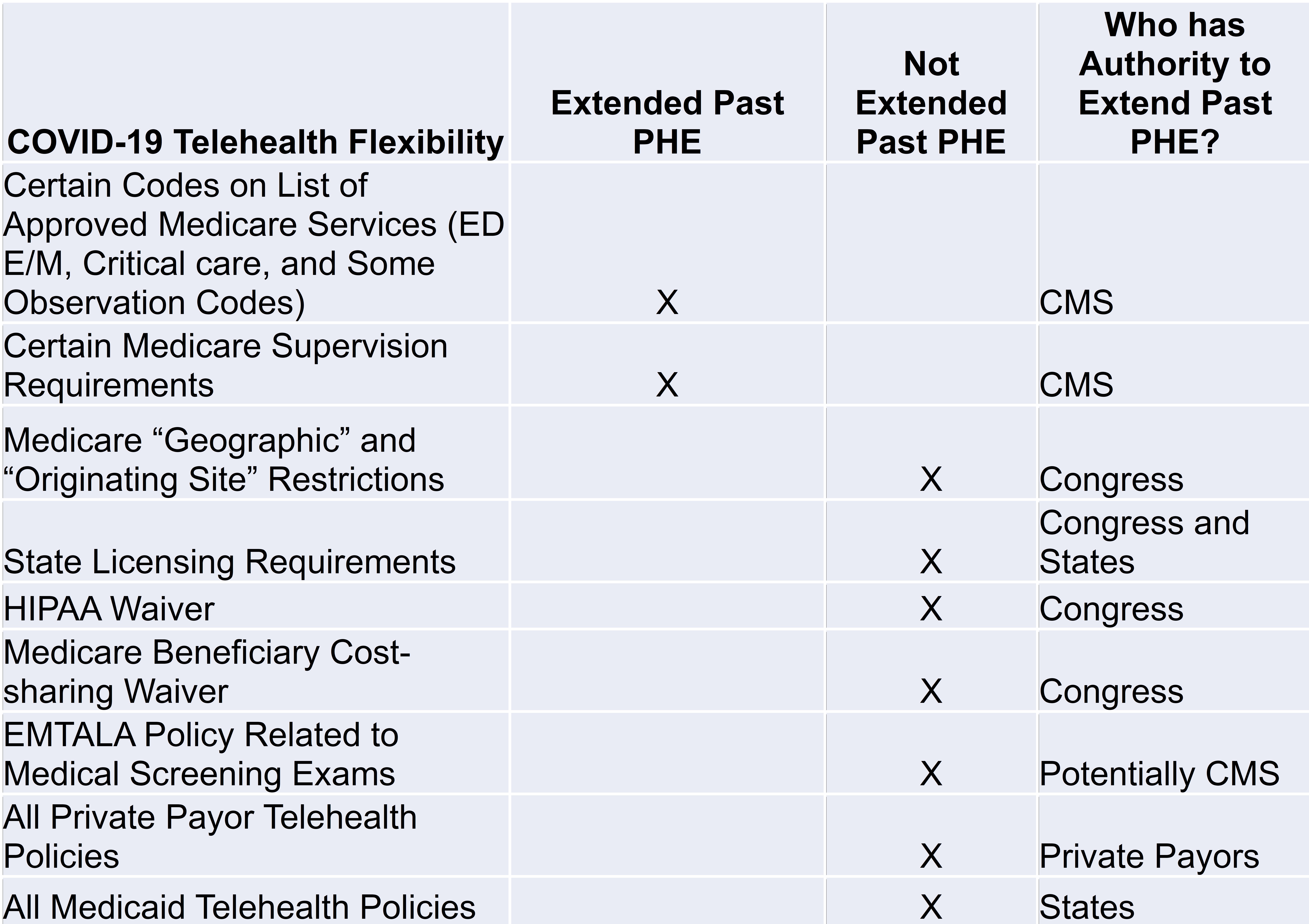 All in all, unless Congress and individual states act, the telehealth rules for Medicare will change dramatically once the PHE ends. And that’s just one payor. The telehealth flexibilities that private payors and state Medicaid agencies have also implemented during the PHE will also end. While ACEP is working with Congress to extend or make permanent some of these flexibilities, it is important for you to know what’s coming and prepare accordingly.