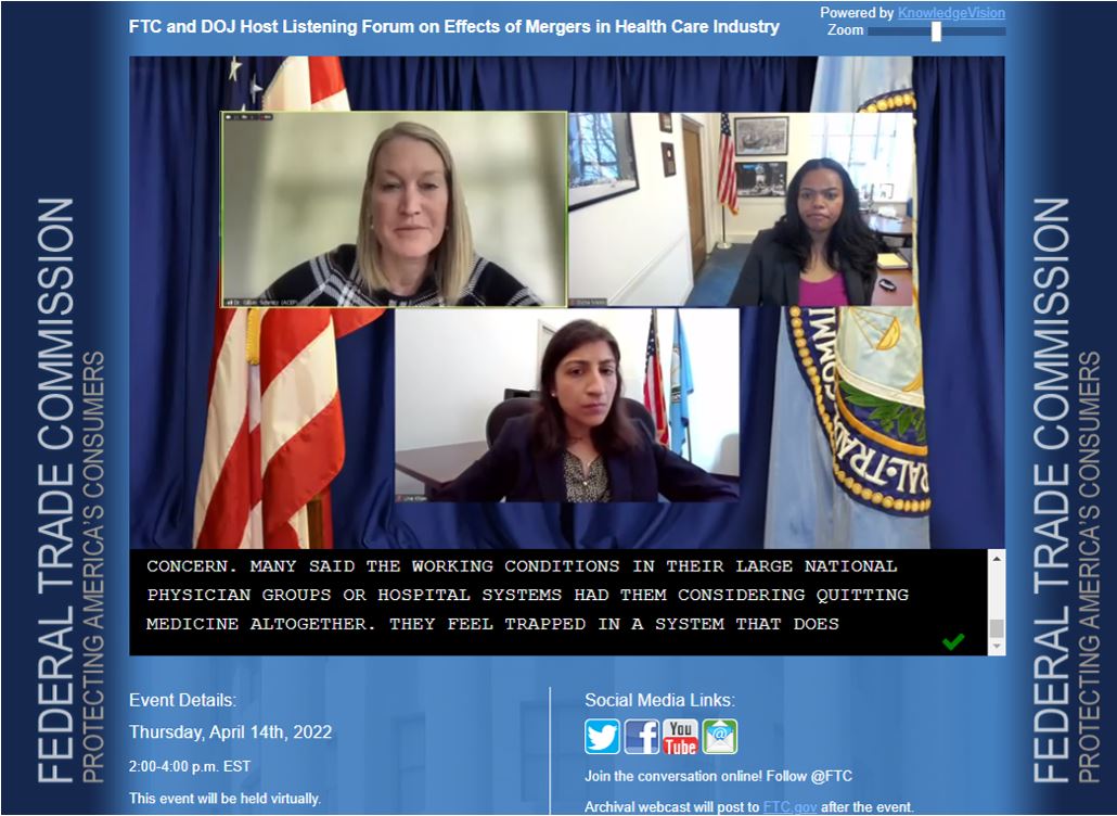 On April 14, ACEP President Dr. Gillian Schmitz and ACEP Executive Director Sue Sedory provided public comments in a listening session hosted by the FTC and DOJ on the effects of mergers and acquisitions in the healthcare industry. In their comments, which can be viewed in full below, Dr. Schmitz and Ms. Sedory shared results from ACEP's story collection that showed numerous anti-competitive labor-related effects associated with mergers and acquisitions in emergency medicine including: