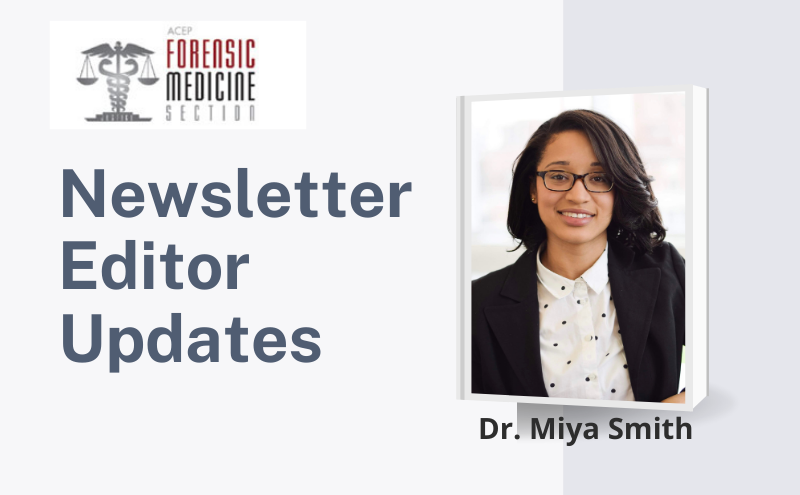 Please do not forget to join the ACEP Forensic Medicine Section Facebook group if you haven’t already. In addition to engagED, this can be a great forum to discuss cases and share resources.