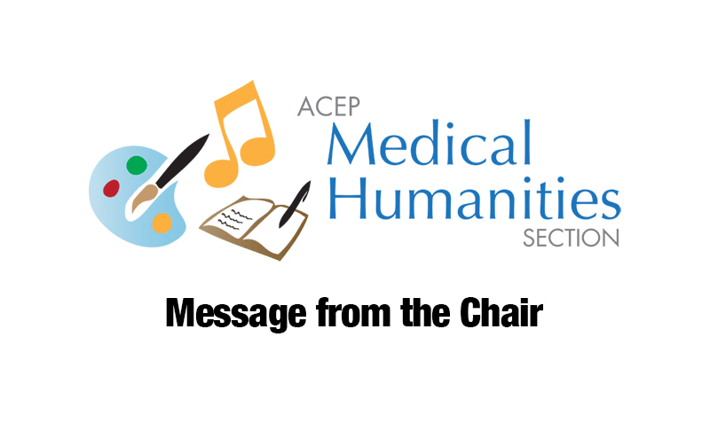 As we continue to work towards our goal of advancing medical humanities from the periphery of emergency medicine to an integral pillar of emergency medicine, I am thrilled to share that we’ve been making some exciting progress. A few months ago, we circulated a call for section members who wished to join a working group to compose a consensus paper on the necessity of the humanities for the specialty of emergency medicine. We had a robust response (a reflection of how invested our section members are), and this stellar coalition of members from across the country, in various stages of their careers, and with diverse interests in humanities disciplines, has already met twice to sketch out what this paper might look like. We look forward to circulating a draft to the section as we move forward.