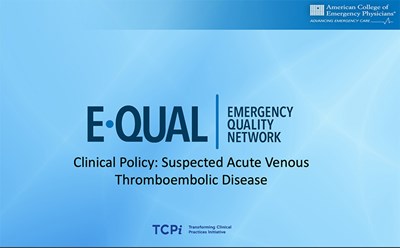 Clinical Policy: Critical Issues in the Evaluation and Management of Adult Patients Presenting to the Emergency Department With Suspected Acute Venous Thromboembolic Disease