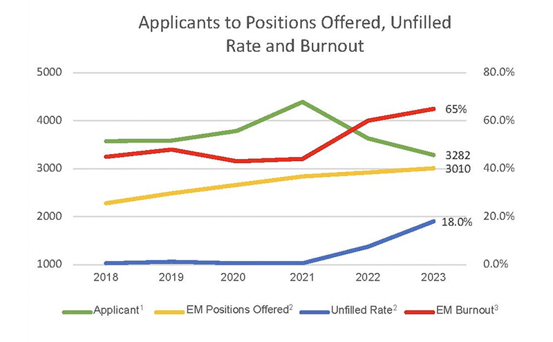 Among all of the match results shared this past week, these critical data points stand out. Over the past 6 years, we know the number of positions offered has increased by 32%. But we also know that the percentage of emergency physicians reporting burnout has increased by 44%, particularly in the last two years.