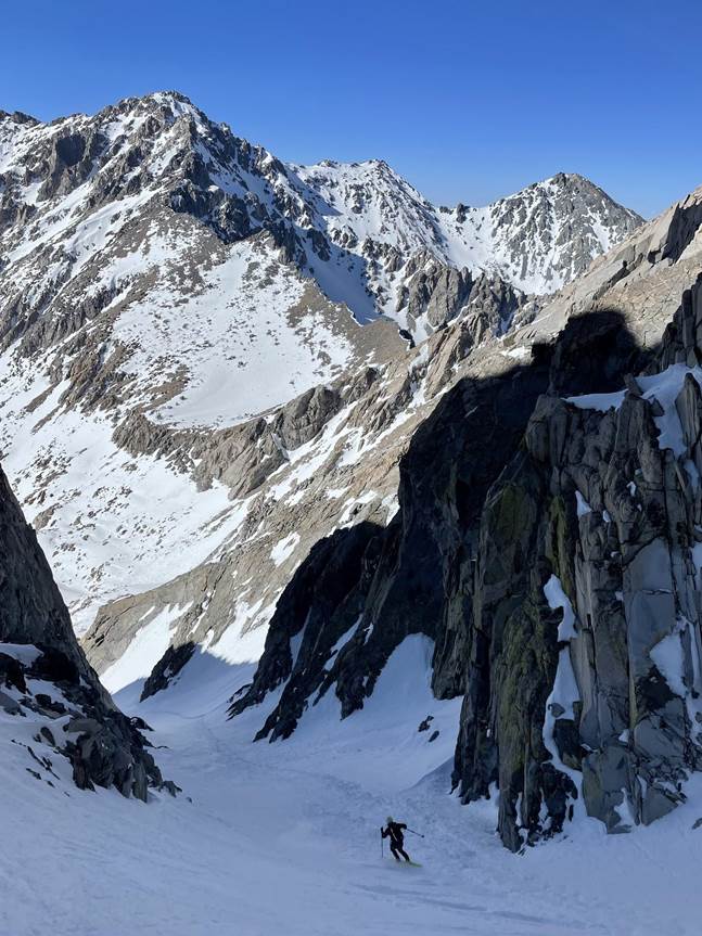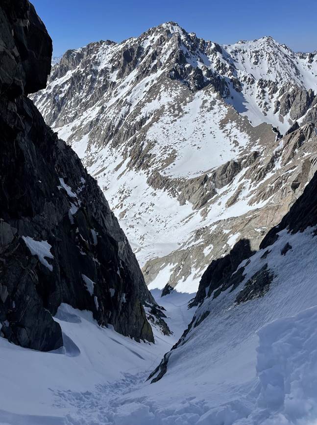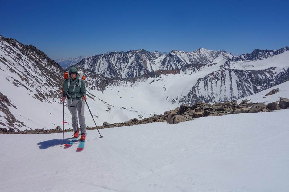 Plan B was to go up Chimney Pass and traverse over to Scimitar Pass. As we started up to Chimney Pass we found ourselves in another hot, south-facing solar oven. I could tell that I didn’t have many beans that day. Once we got to the transition point to start up towards Scimitar Pass I was really moving slow. Kyle set a booter and I slowly followed, feeling worked and bonky. Eventually, we got to Simitar Pass and transitioned for our final descent of the trip. A 3000’ corn run through the Palisades. It was a great run to finish with. As we got to the end of the snow we transitioned to hiking and made our way down the trail back to the truck where Lone Pine Kurt had picked us up 4 days before.
