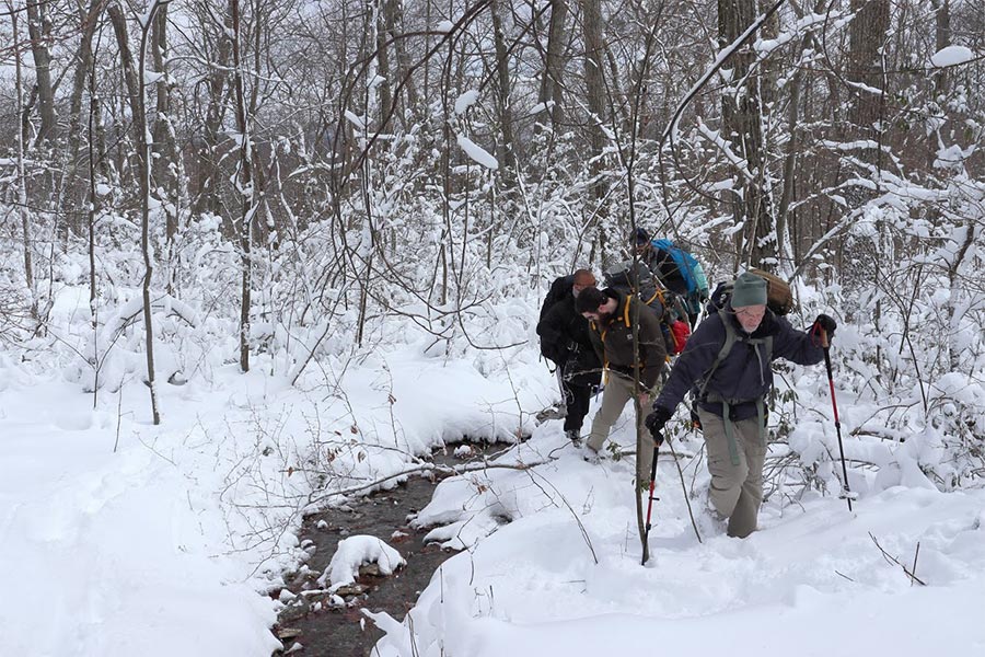 UCONN EM residency first Wilderness Medicine Backpacking Weekend climbing Mt Alander in Mt Washington State Park, Massachusetts in late March