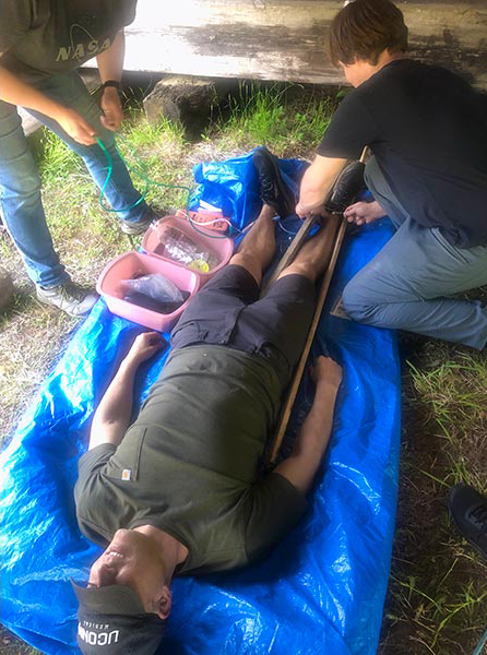 UCONN medical students learning austere medical care for disasters with the help of UCONN EM faculty and residents